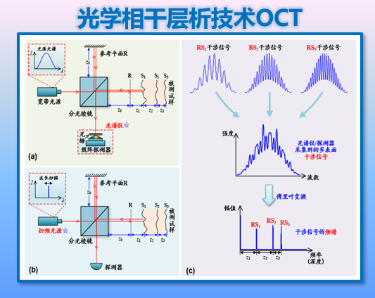 光学相干层析技术经历了几代发展:第一代采用希尔伯特变换作为信息处理手段,但存在成像速度慢和敏感度低等问题;第二代在频域进行,使用时域光学相干层析技术,但仍然面临着层析分辨率受限、测量精度不高和成像信噪比低等难题。这些问题不仅仅局限于层析测量,而是通用问题。国际上解决这些问题的思路主要是从硬件层面着手,如采用超宽带光源替代传统的半导体扫频激光器以提高分辨率,但这会大幅增加硬件成本并限制其实际应用。另一种解决方法是利用光学空间滤波消除相干噪声,但会增加系统设计的复杂性,难以实现集成度。此外,高速二维光谱成像系统也被用于提高成像质量,但会导致数据量激增,存储和处理方面面临挑战。因此,国际上的研究者正在突破第二代频域光学相干层析技术的局限性,并寻求新的处理方法和技术。一些学者尝试在时域下优化层析信号以解决频域OCT的问题,但受到强噪声的限制而未能取得进展。