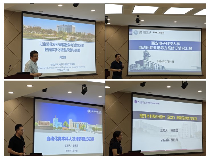 教学研讨环节由陕西省自动化学会教育普及委员会秘书长赵建文教授主持。会议邀请了长安大学电子与控制工程学院院长闫茂德教授、西安电子科技大学机电工程学院副院长陈晓龙教授、西安邮电大学自动化学院潘志刚副教授、西安理工大学自动化与信息工程学院副院长季瑞瑞副教授围绕自动化类专业建设、培养方案修订、课程建设、实践创新、毕业设计过程管理与质量监控等内容作精彩报告。与会专家进行了深入的研讨,就自动化类专业教改教研、课程设置和实践经验展开了热烈交流和讨论。