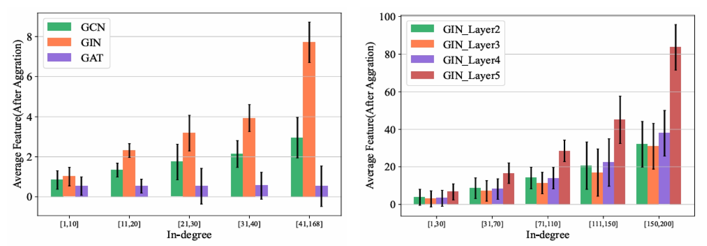 图2. 研究发现聚合后节点特征的数值范围与其拓扑特性强相关,基于此特性提出了端到端的图拓扑自适应的混合量化算法A2Q